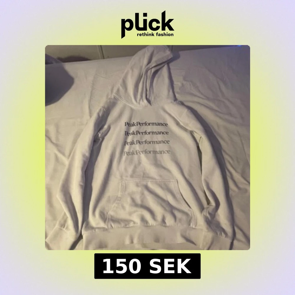 Säljer en stilren vit hoodie från Peak Performance med tryck på framsidan. Tröjan har en klassisk känguruficka och en bekväm huva. Perfekt för en avslappnad stil.