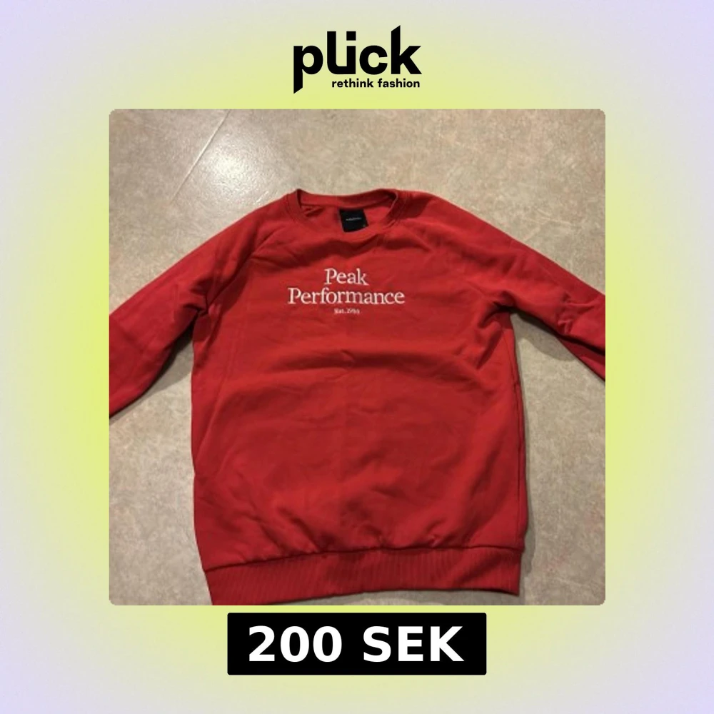 Säljer en röd sweatshirt från Peak Performance med vit logga på bröstet. Tröjan har rund halsringning, långa ärmar och ribbade muddar vid ärmslut och nederkant. Perfekt för en avslappnad stil.