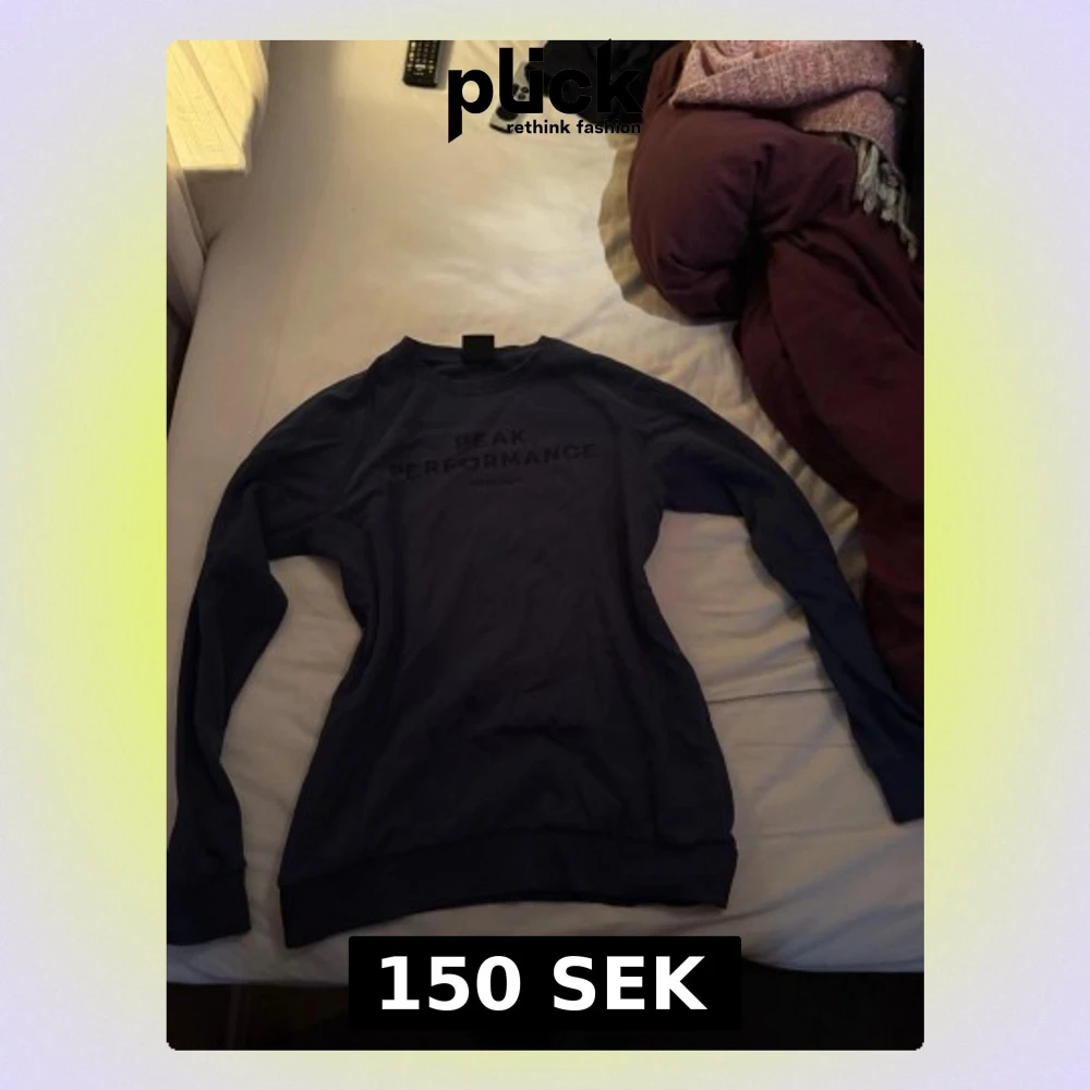 Säljer en mörkblå långärmad tröja från Peak Performance med tryckt logga på bröstet. Tröjan har rund hals och ribbade muddar vid ärmslut och nederkant. Perfekt för dig som gillar stilrena och sportiga plagg.