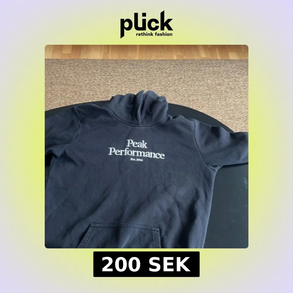 Säljer en stilren svart hoodie från Peak Performance med tryck på bröstet. Perfekt för en avslappnad stil. Hoodien har en klassisk design med känguruficka och ribbade muddar.