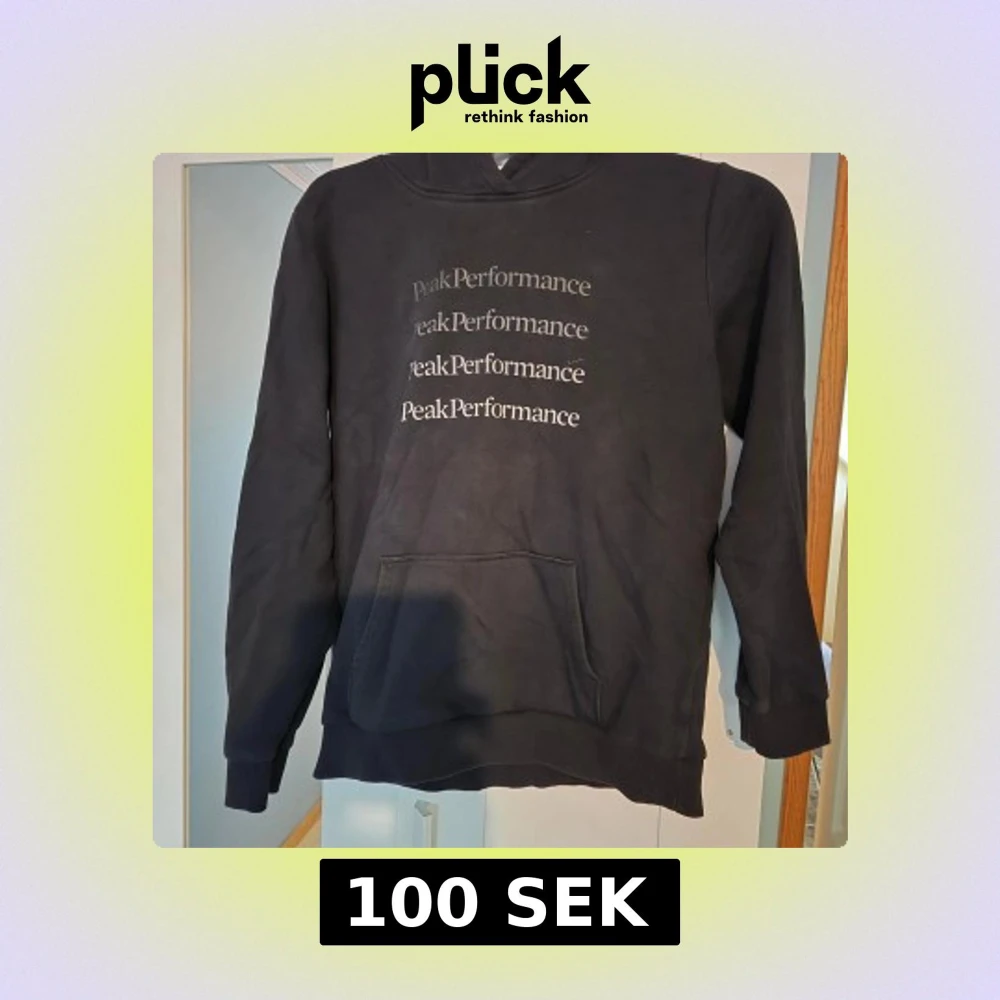 Svart hoodie från Peak Performance med tryckt logga i flera rader på bröstet. Klassisk känguruficka framtill, ribbade muddar och huva. Perfekt för en avslappnad och sportig stil.