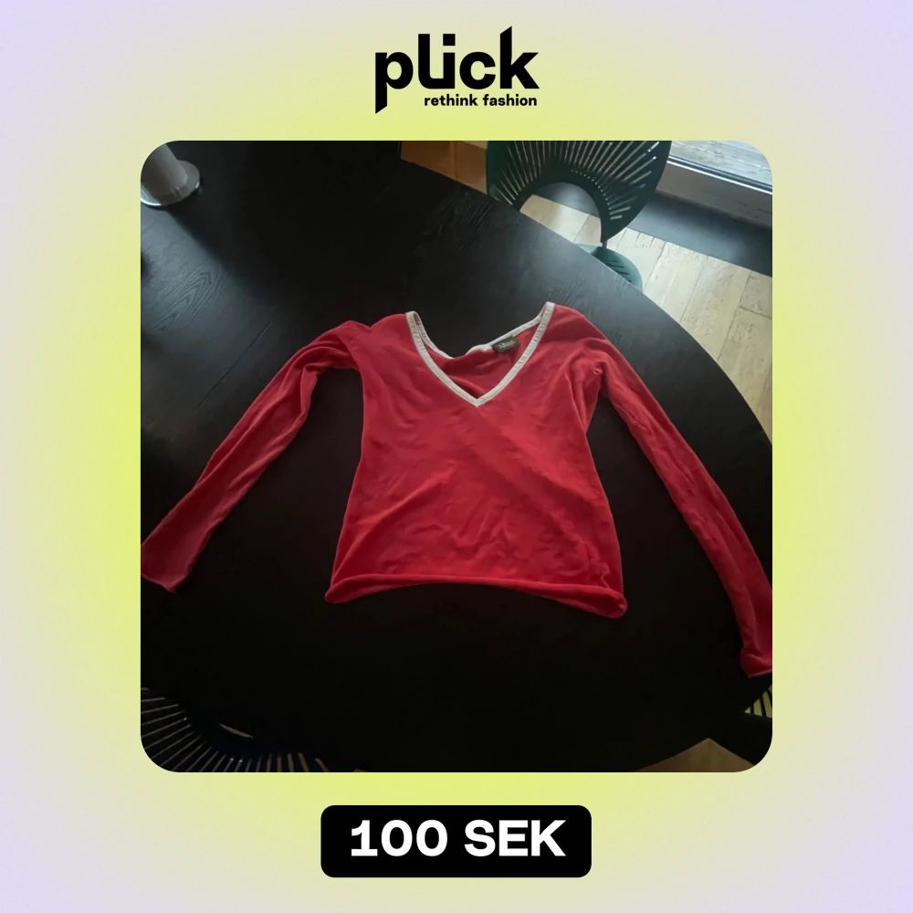 Säljer en snygg röd tröja med v-ringning och långa ärmar. Perfekt för höst och vinter, den är både stilren och bekväm. Passar bra till både vardag och fest. Hör av dig vid intresse! ❤️