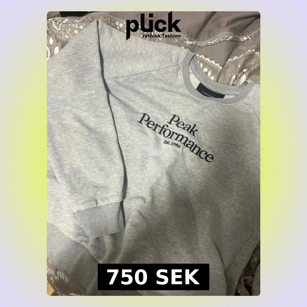 Säljer en ljusgrå sweatshirt från Peak Performance med svart broderad logga på bröstet. Tröjan har rund hals, långa ärmar och ribbade muddar vid ärmslut och nederkant. Perfekt för chill dagar eller när du vill ha en enkel och snygg look.