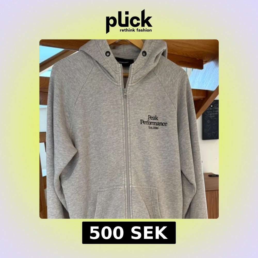 Snygg ljusgrå hoodie från Peak Performance med dragkedja och logga på bröstet, sparsamt andvänd och i fint skick, nypris ligger på 1399kr. Storlek L