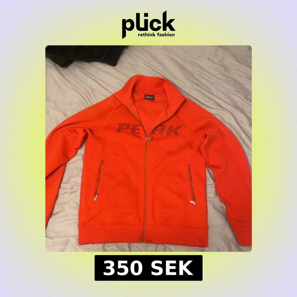 Ny pris, 2200 kr. Snygg röd ziptröja från Peak Performance med broderad PEAK-logga på bröstet. Den är storlek L men passar perfekt till de som har storlek M. Tröjan har hög krage, två fickor med dragkedja och hel dragkedja framtill. Perfekt för lager-på-lager och chill dagar. Materialet är mjukt och känns som bomull. Det är passande till lite vintage stil och den är unik!