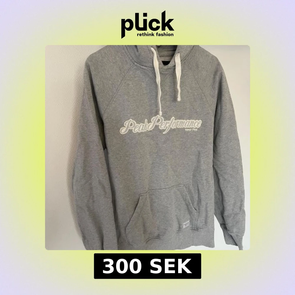 Säljer en klassisk grå hoodie från Peak Performance med vit logga på bröstet och känguruficka framtill. Tröjan har huva med vita snören och ribbade muddar. Perfekt för en avslappnad stil.