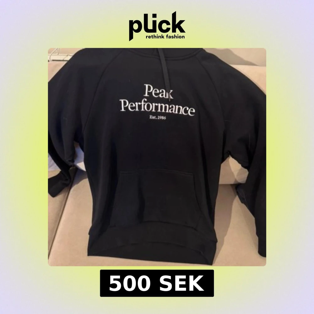 Svart hoodie från Peak Performance med vit logotyp på bröstet och klassisk magficka. Tröjan har huva med snörning och långa ärmar, perfekt för chill dagar eller när du vill ha en clean streetstyle-look.