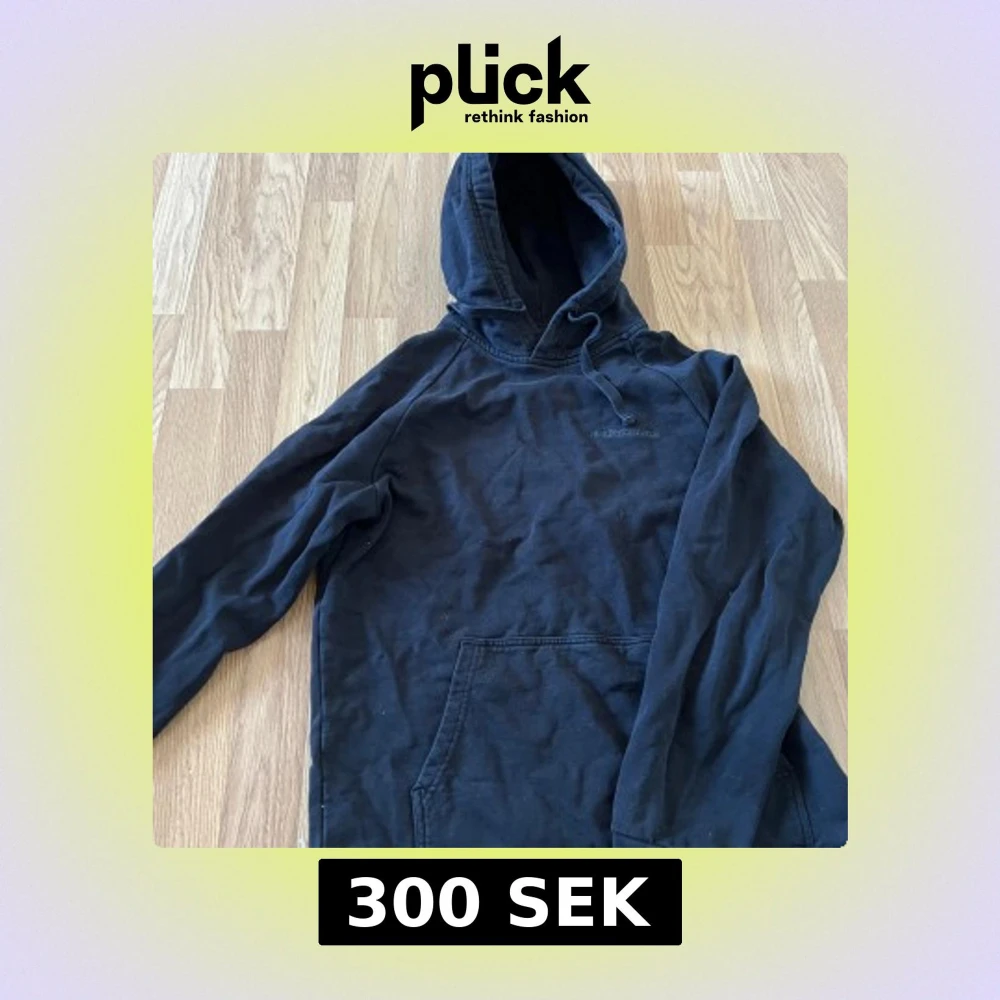Säljer en svart hoodie från Peak Performance. Den har en klassisk design med en stor ficka framtill och justerbar huva. Perfekt för en avslappnad stil. Ett lite hål i luvan