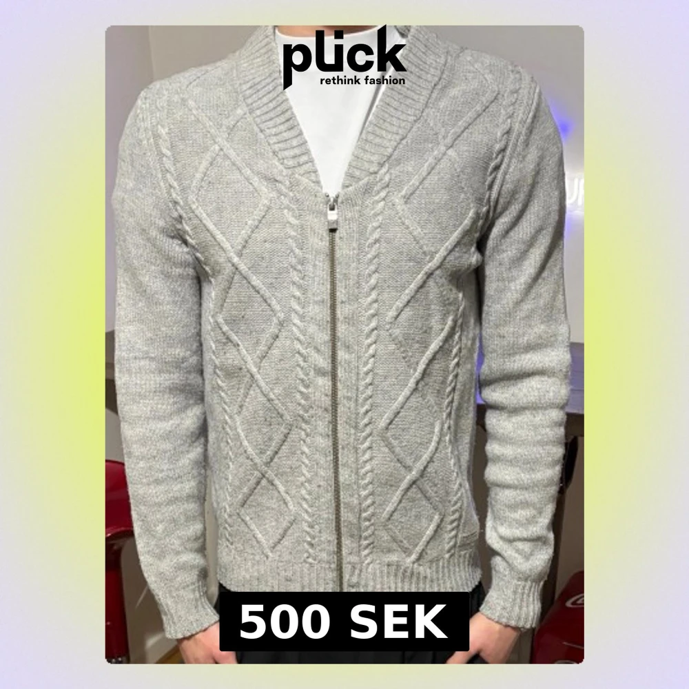 Grå peak kofta/lite bredare lång modell/nopprig på armbågarna lätt att fixa