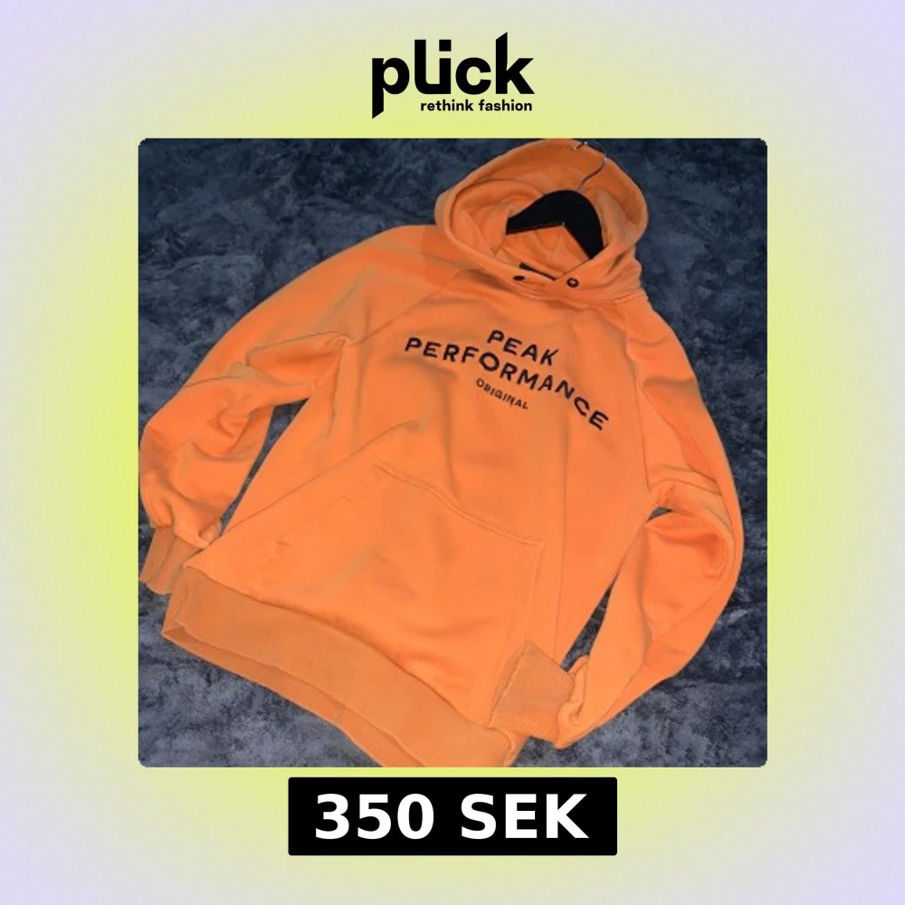 Säljer en snygg orange hoodie från Peak Performance med svart text på bröstet. Tröjan har huva, magficka och ribbade muddar vid ärmslut och nederkant. Perfekt för dig som gillar streetwear och vill sticka ut med färg.
