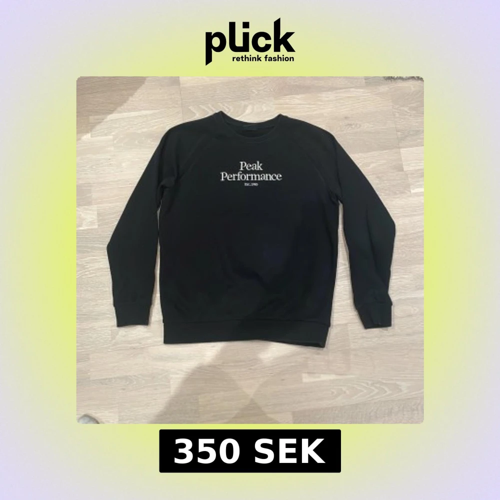 Säljer en stilren svart tröja från Peak Performance med vit text på bröstet. Tröjan har långa ärmar och en rund halsringning. Perfekt för en avslappnad stil. Använd väl men också väl omhändertagen.