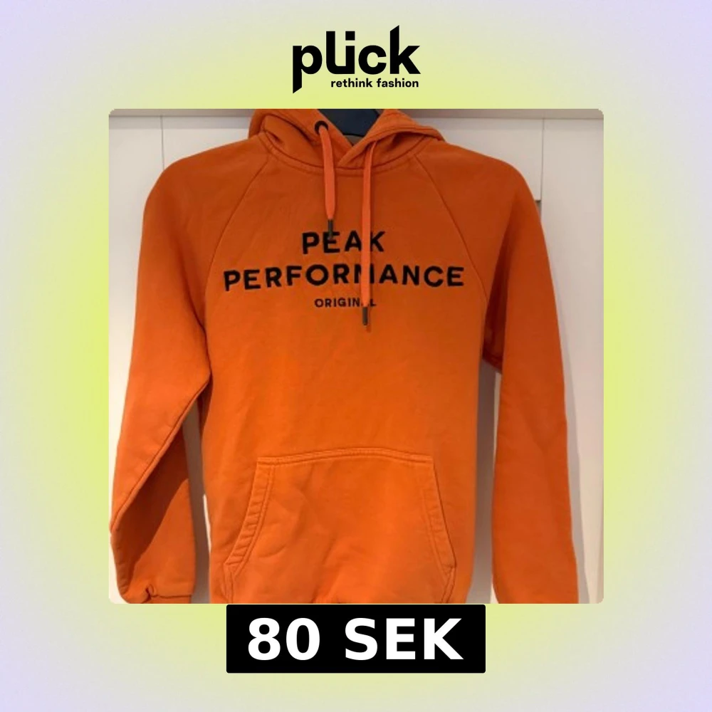 Säljer en snygg orange hoodie från Peak Performance med svart text på framsidan. Tröjan har en klassisk känguruficka och justerbar huva med dragsko. Perfekt för en avslappnad stil.