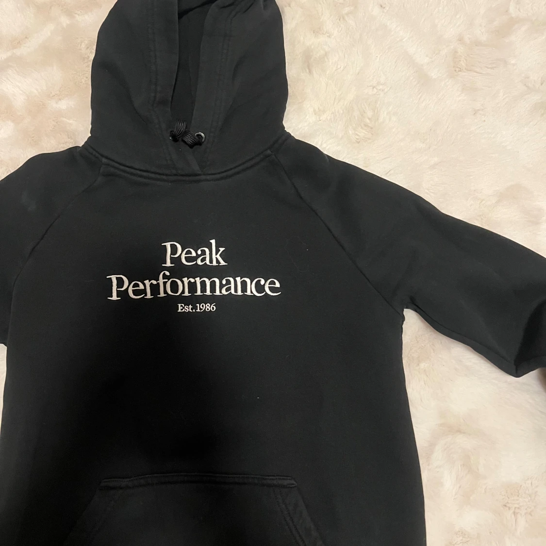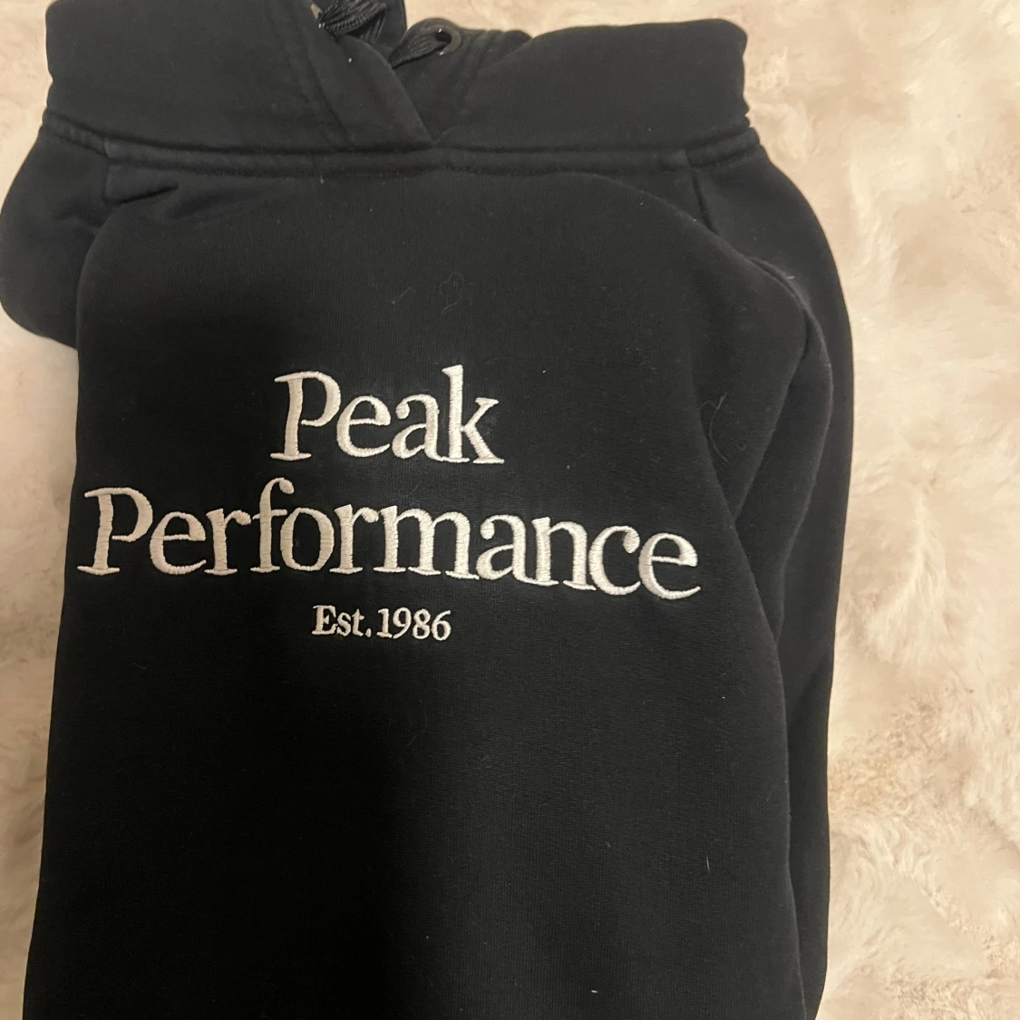 Svart hoodie från Peak Performance med vit broderad logga på bröstet och klassisk känguruficka. Tröjan har huva med snörning och är perfekt för en chill och sportig stil. Mjuk insida och relaxed fit.