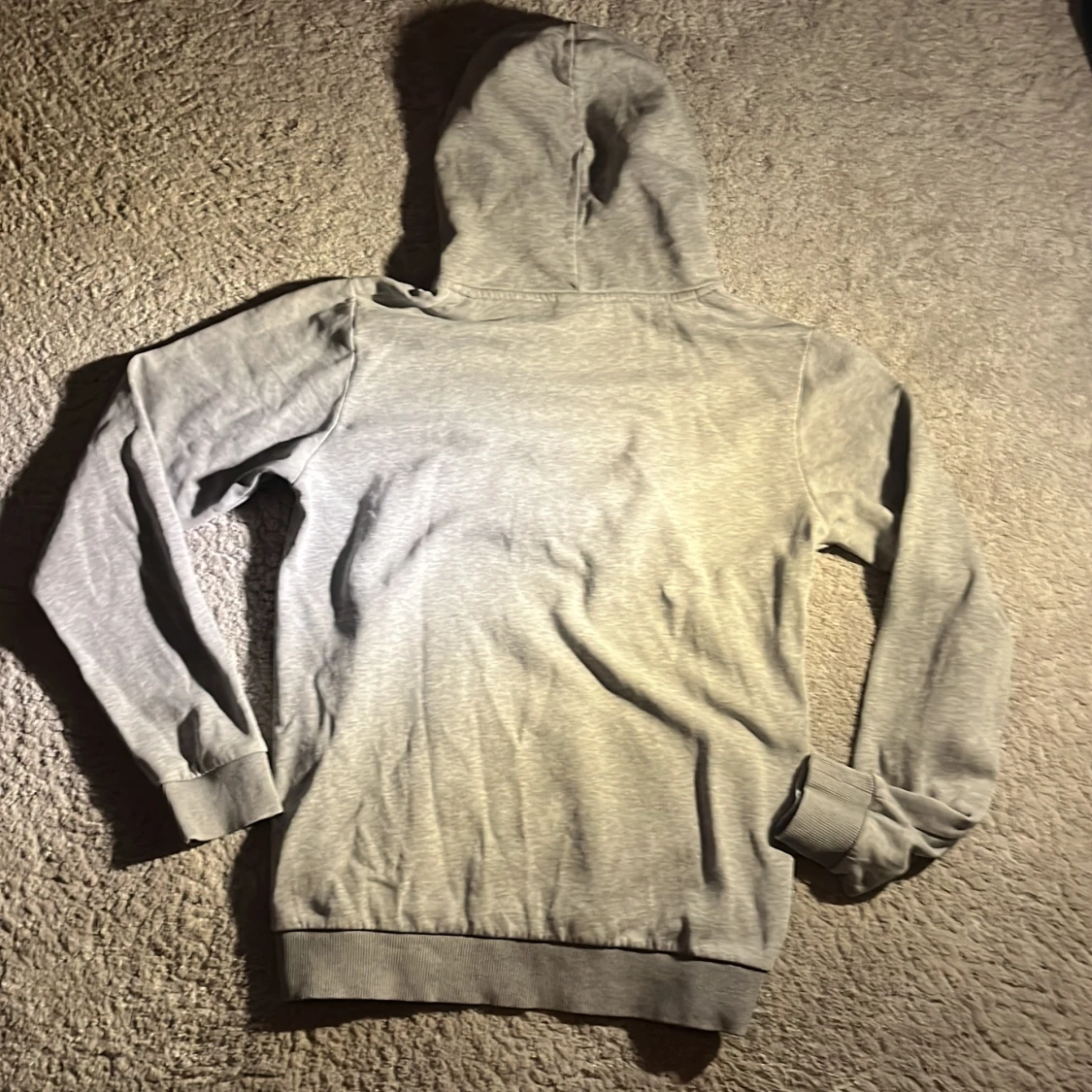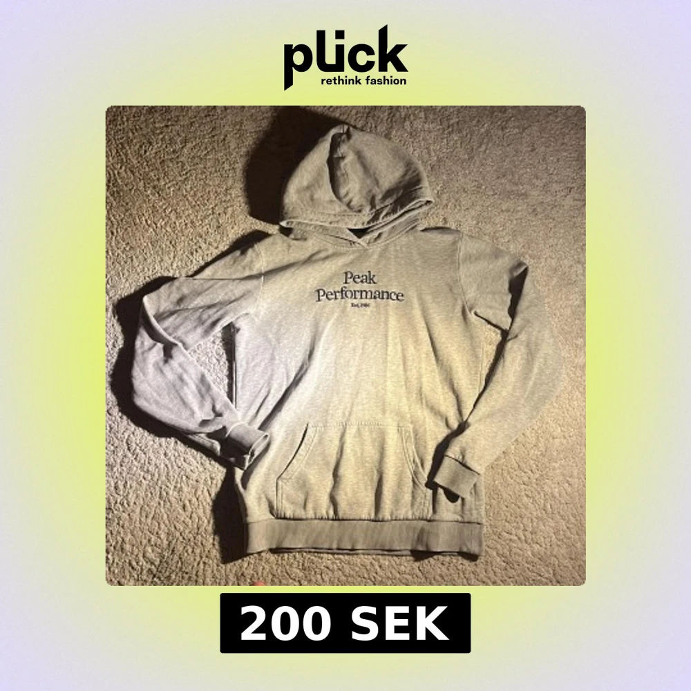 Säljer en grå hoodie från Peak Performance med broderad logga på bröstet. Tröjan har huva, magficka och ribbade muddar vid ärmslut och nederkant. Perfekt för en avslappnad stil.