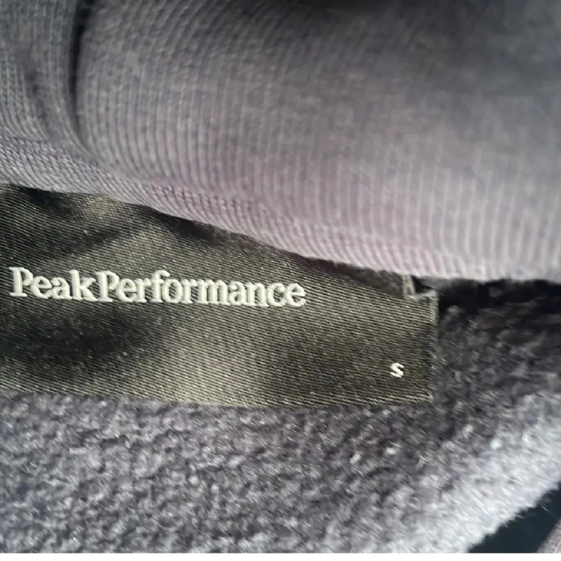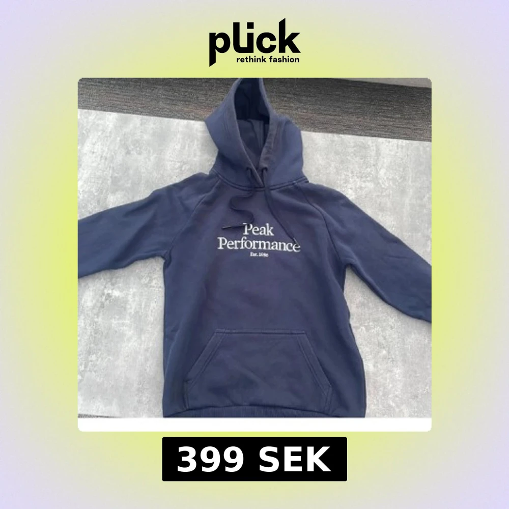 Snygg mörkblå hoodie från Peak Performance i storlek S. Tröjan har huva med snörning, stor magficka och vit logga på bröstet. Perfekt för chill eller träning, mjukt material och klassisk passform.