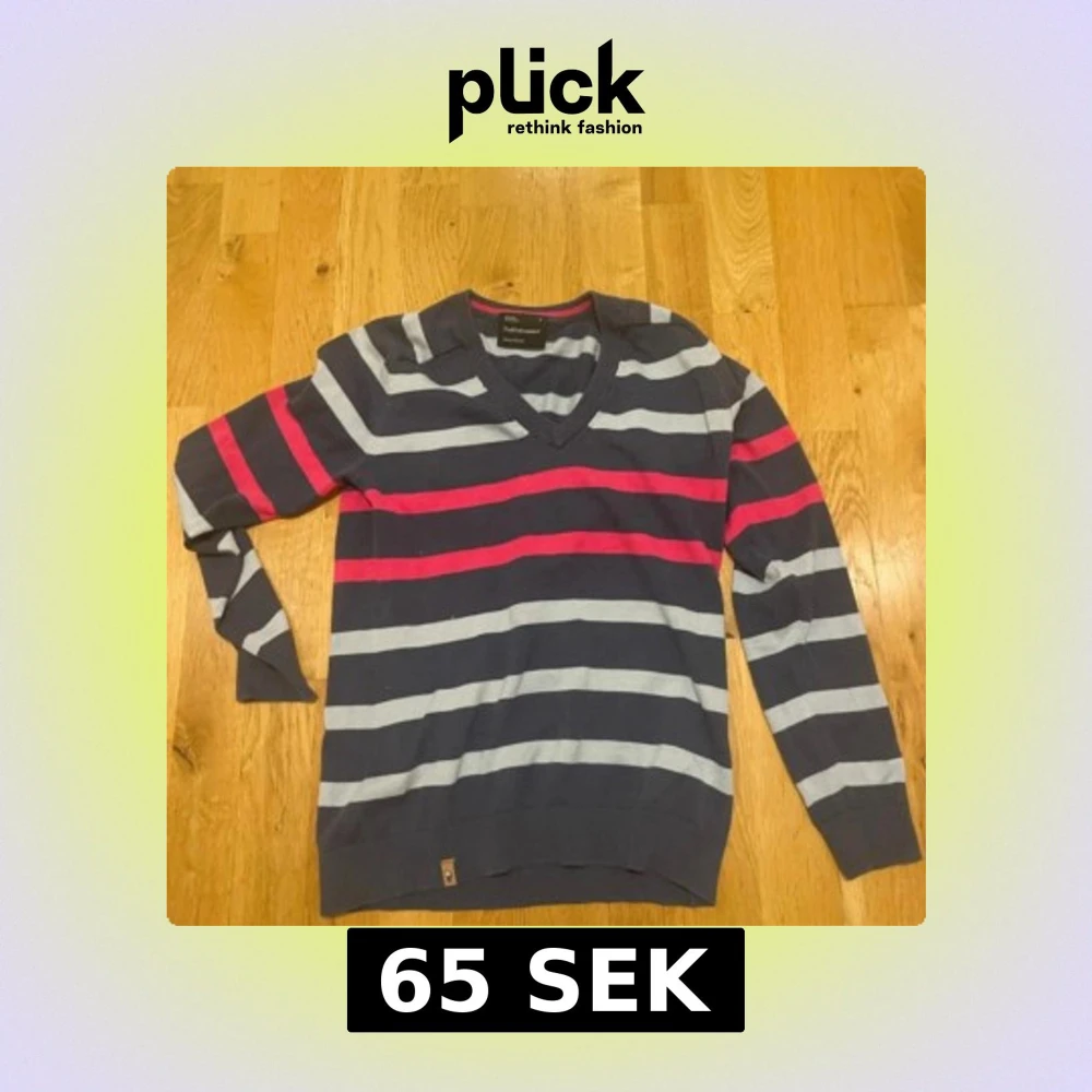 Randig tröja från Peak Performance i marinblått med ljusgrå och rosa ränder. V-ringad modell med långa ärmar och ribbade muddar. Perfekt för dig som gillar klassisk stil med en färgklick. Materialet är mjuk bomull.