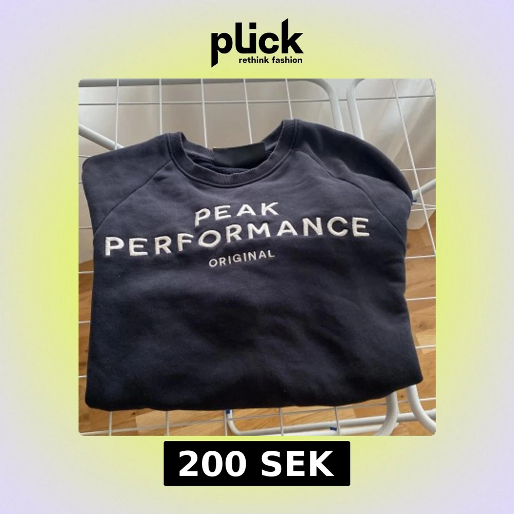 Säljer en stilren svart sweatshirt från Peak Performance med vit text på bröstet. Tröjan har en rund halsringning och långa ärmar. Perfekt för en avslappnad look.