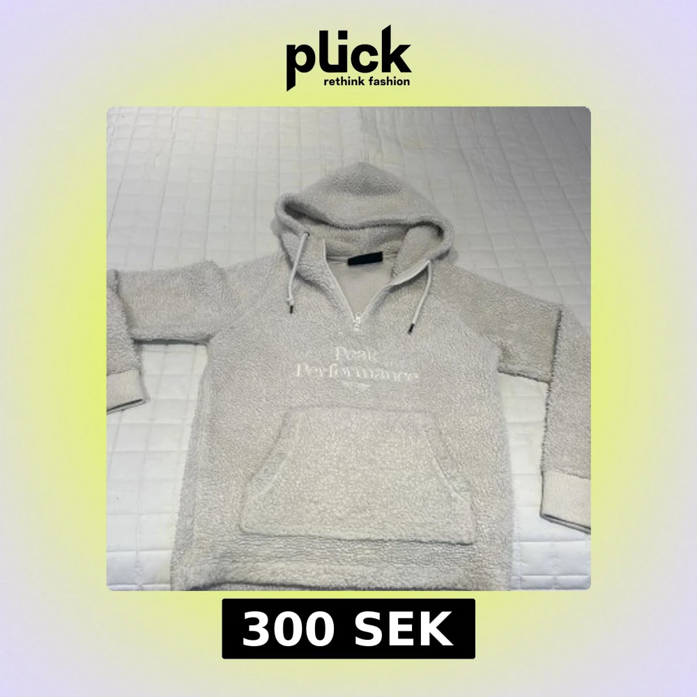 Mysig ljusgrå hoodie från Peak Performance i fleece med broderad logga på bröstet