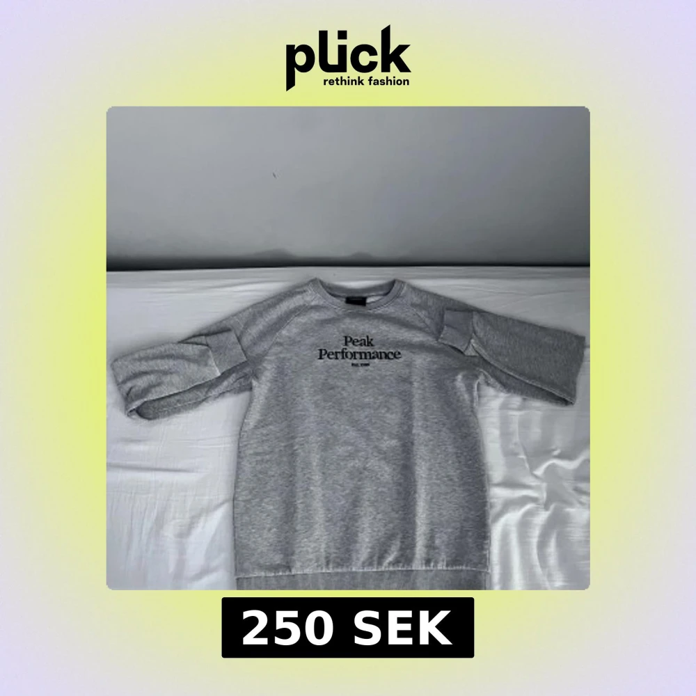 Säljer en stilren grå sweatshirt från Peak Performance med svart logga tryckt på bröstet. Tröjan har rund halsringning, ribbade muddar och är tillverkad i mjuk bomullsmix. Perfekt för en avslappnad och sportig look.
