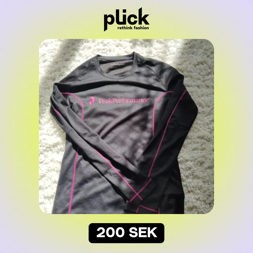 Träningströja från Peak Performance. Liten i storleken, speciellt längden i armarna. Skulle mer säga att den är XXS eller XS. Priset kan diskuteras💗 Materialet är inte stretchigt
