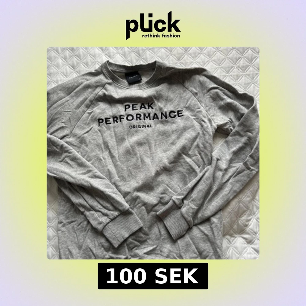 Säljer en stilren grå sweatshirt från Peak Performance med svart text på bröstet. Tröjan har långa ärmar och ribbade muddar vid ärmslut och nederkant. Perfekt för en avslappnad stil.