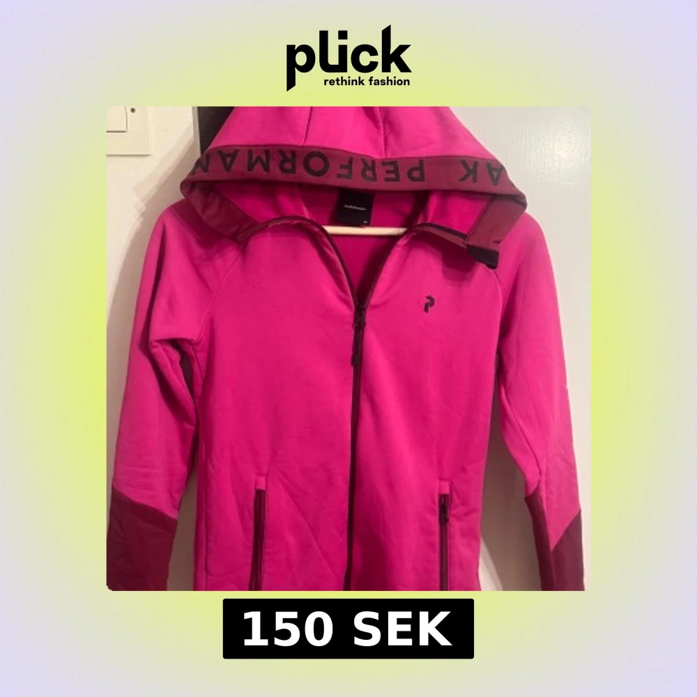Snygg rosa vindjacka/kofta från Peak Performance med huva och dragkedja framtill. Jackan har mörkare detaljer på ärmslut och huva, samt två fickor med dragkedja.