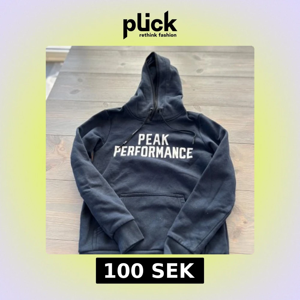 Säljer en mörkblå hoodie från Peak Performance i storlek XS. Tröjan har stor huva med snörning, stor vit logga framtill och en klassisk känguruficka. Mjuk insida och ribbade muddar vid ärmslut och nederkant. Perfekt för chill dagar eller när du vill vara extra bekväm.