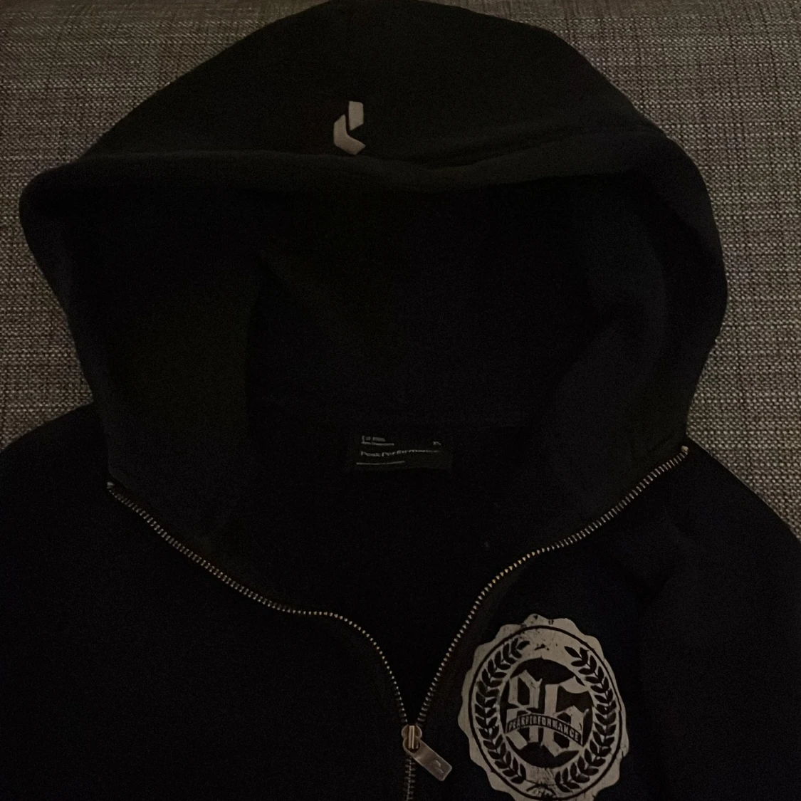 Svart hoodie från Peak Performance med hel dragkedja och huva. Snyggt vitt emblem på bröstet och diskret logga på huvan. Tröjan har långa ärmar och ribbade muddar. Perfekt för chill eller träning, riktigt stilren och bekväm.