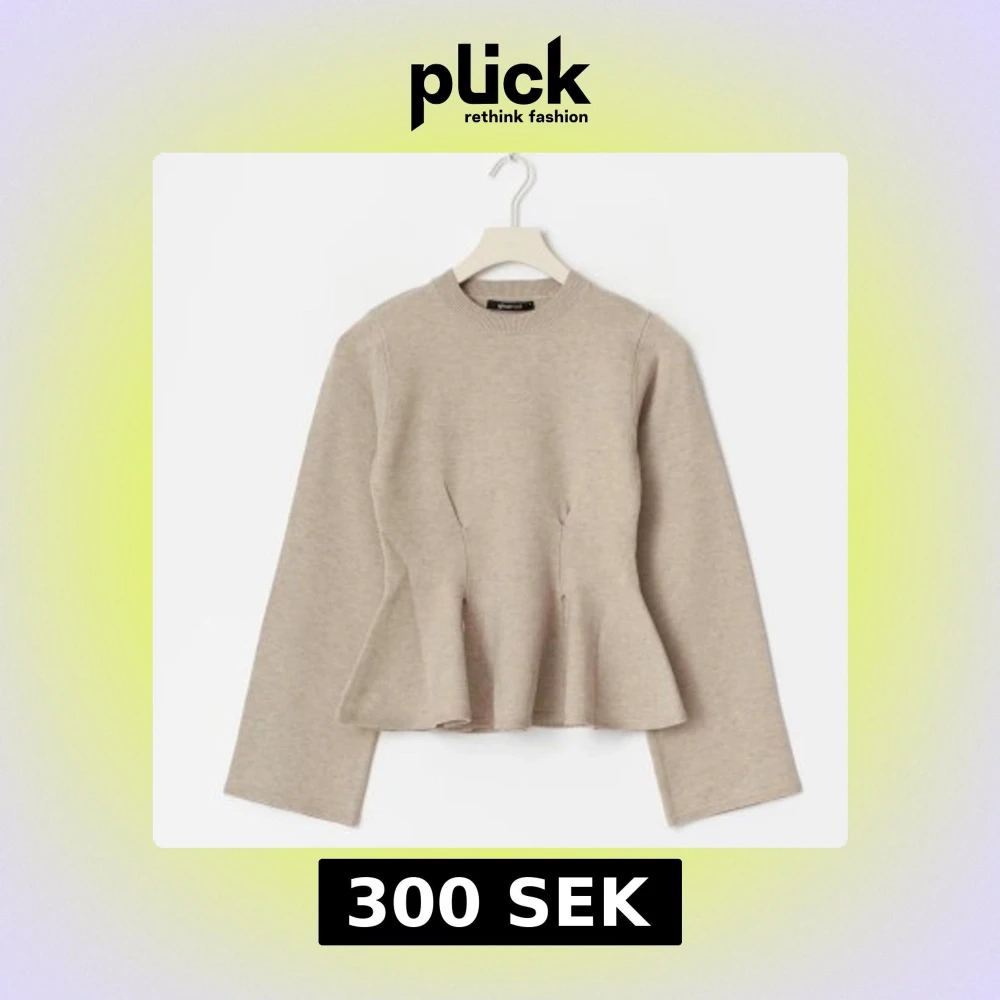 Snygg beige tröja från Gina Tricot med peplumdetalj som ger en cool siluett. Köptes för 400 och är helt ny och oanvänd🤎