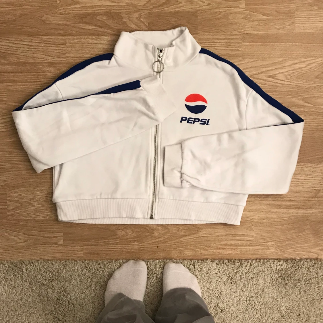 Vit pepsi tröja med dragkedja. Knappt använd så i mycket gott skick!