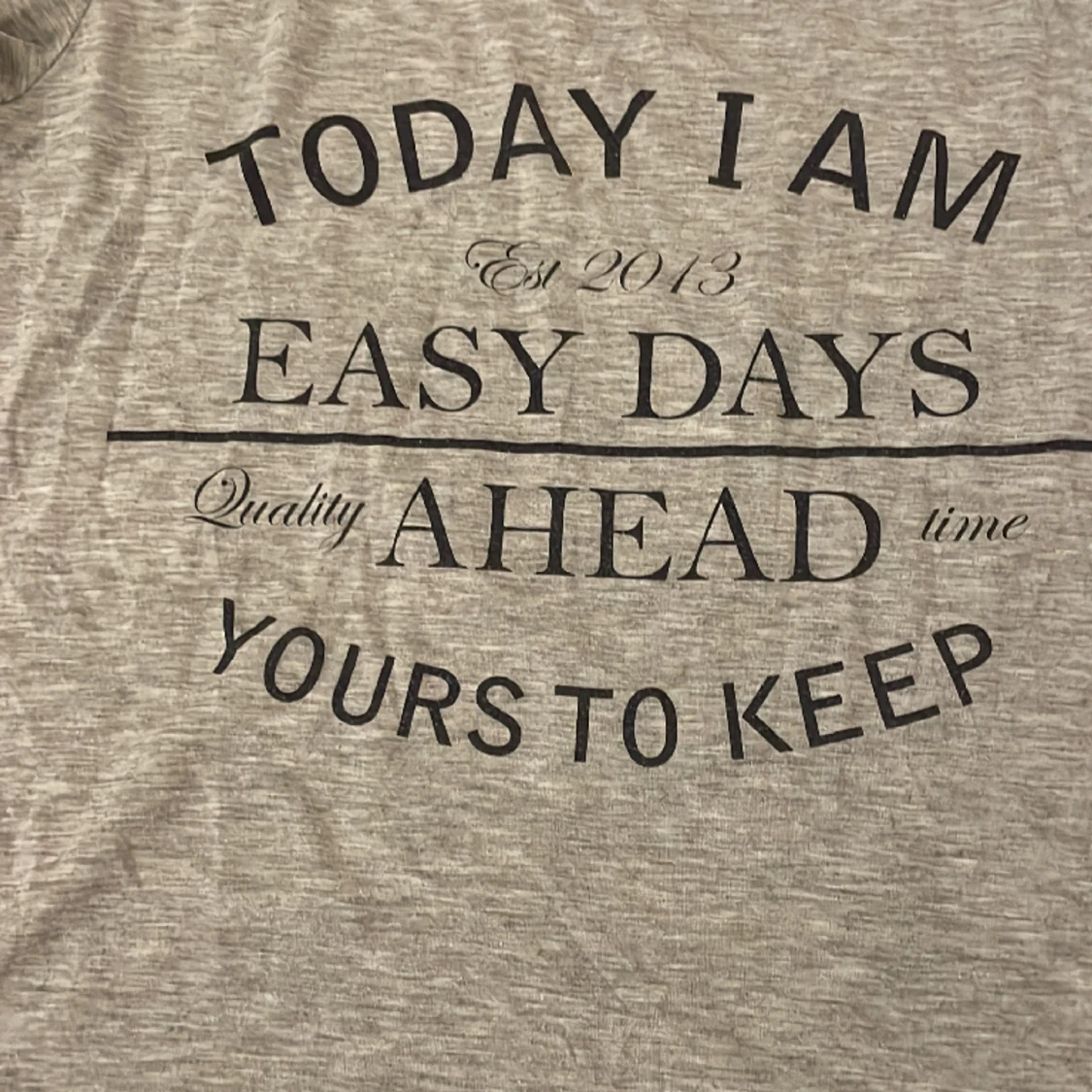 En grå långärmad tröja. Bra som mjukiströja, men även som underställ. Innehåller text.