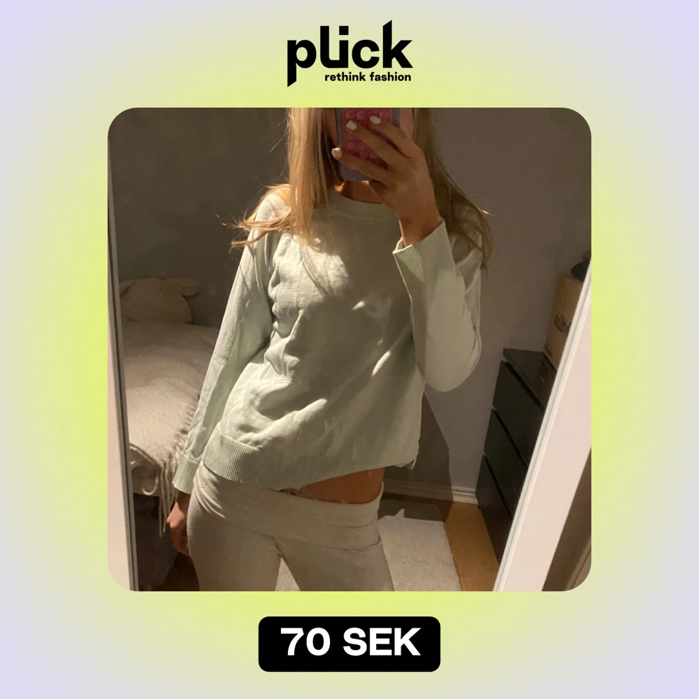 Säljer en superfin ljusgrön tröja från Zara. Den är i bra skick och perfekt för både vår och höst. Tröjan har lite korta ärmar och är gjord i ett mjukt bomullsmaterial. Den har en normal passform och ribbade kanter vid ärmslut och nederkant. Perfekt för en avslappnad look! 🌿