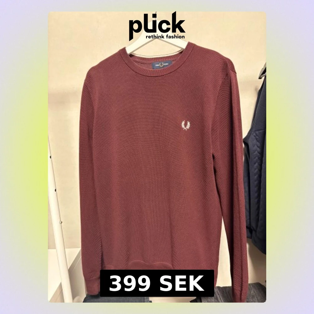 Snygg vinröd tröja från Fred Perry med klassisk rund hals och diskret logga broderad på bröstet. Tröjan är stickad i ett mjukt material och har långa ärmar samt ribbade muddar vid hals, ärmslut och nederkant. Perfekt för dig som gillar stilrena plagg. Helt ny endast testad en gång!