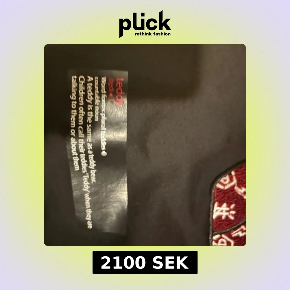 Svart hoodie från Philipp Plein med stor röd och vit mönstrad teddy-björn på framsidan och broderad text 'PLEIN Teddy' i rött på ryggen. Tröjan har huva och långa ärmar, tillverkad i mjuk bomull. Perfekt för dig som gillar streetwear med unik design.🤑🌟 använd en gång köpte 2 st men min fru gillade inte motivet så den säljs istället köptes ny för 10.000