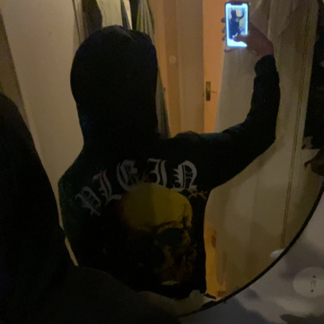 Säljer en svart hoodie från Philipp Plein med huva och snörning. Framsidan har ett blixtliknande mönster i gult och blått, samt logga på bröstet. Baksidan har en stor gul dödskalle och texten 'PLEIN' i vitt. Grym streetstyle vibe!