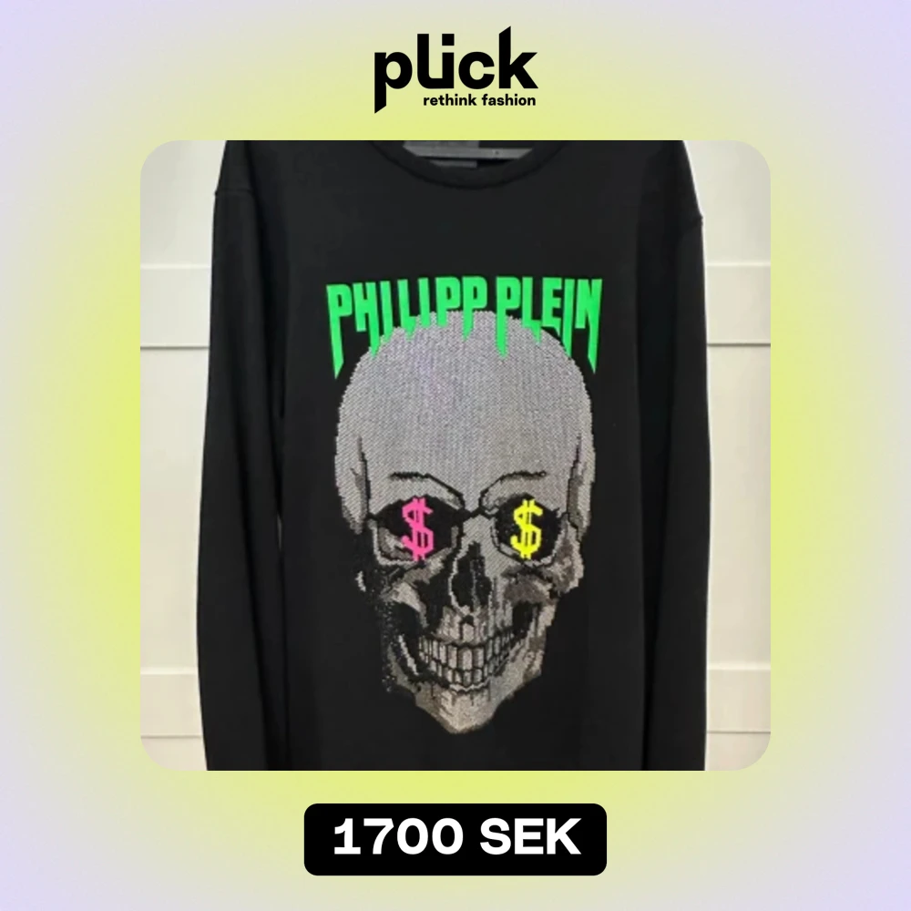 Philipp Plein tröja med diamanter på. I väldigt bra skick, tröjan är i XXL men mer som en XL. Säljes pga för stor för mig.