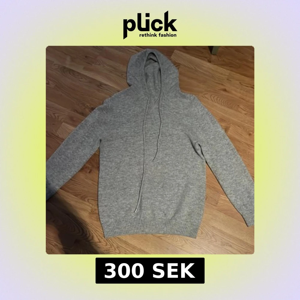 Säljer en enkel och stilren grå hoodie med huva och dragsnören.