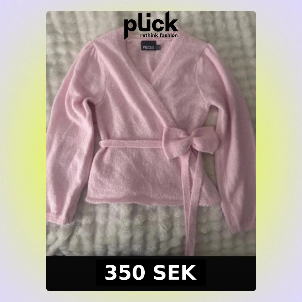 Säljer en supermjuk ljusrosa omlottkofta från Pieces med långärmade puffärmar och ett brett bälte som knyts i midjan. Koftan har en mysig stickad känsla och passar perfekt för chilliga dagar. Snygg att styla med jeans eller kjol!
