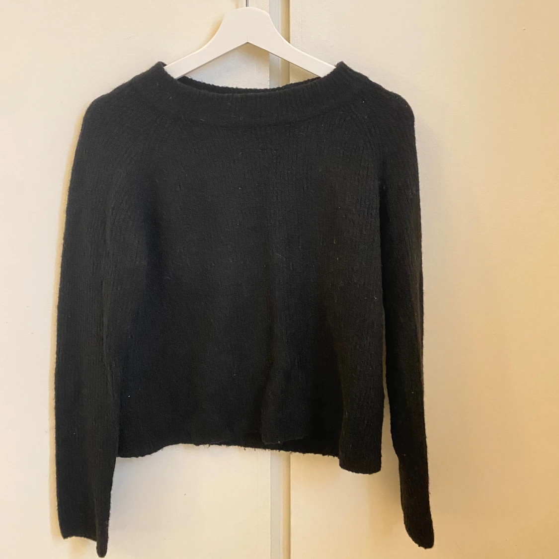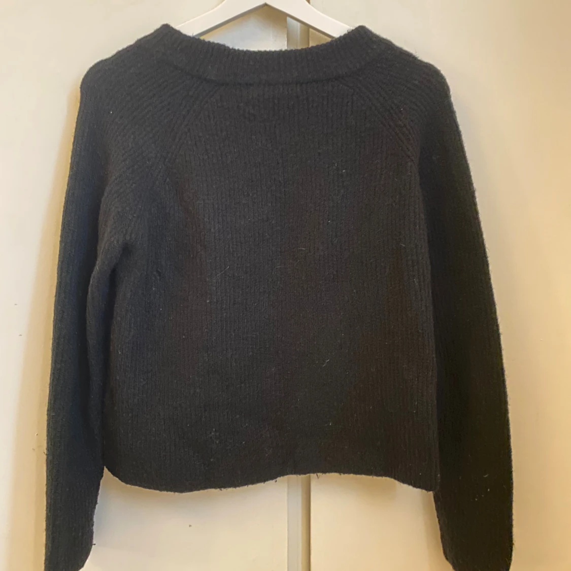 En svart stickad tröja med rund halsringning och långa ärmar. Tröjan har en enkel och klassisk design. Mjuk och skön känsla, passar till allt i garderoben. Storlek M men liten i storleken så skulle säga att den passar s/xs