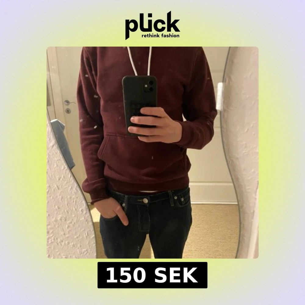 Säljer en snygg vinröd hoodie från Pier One. Den har en klassisk design med en stor ficka framtill och vita snören vid huvan. Perfekt för en avslappnad stil.