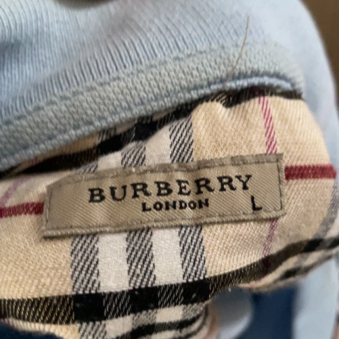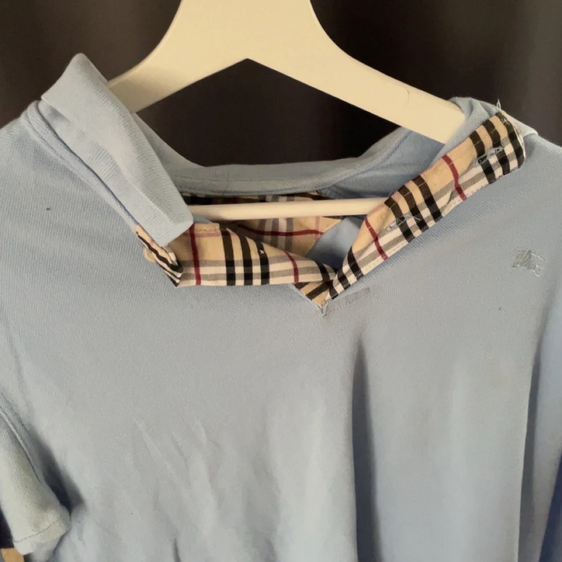 Snygg ljusblå pikétröja från Burberry med klassisk rutdetalj i kragen och diskret broderad logga på bröstet. Tröjan har långa ärmar och är gjord i mjuk bomull, perfekt för en clean och stilren look.