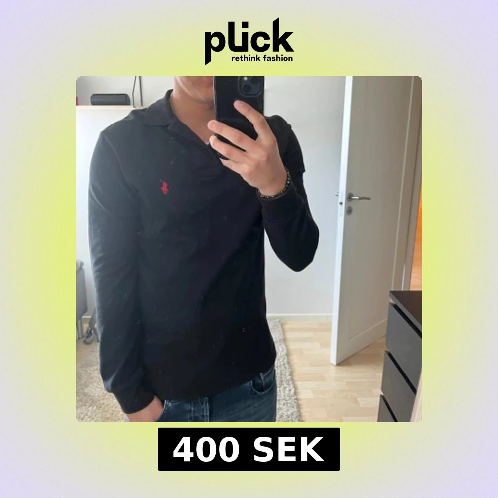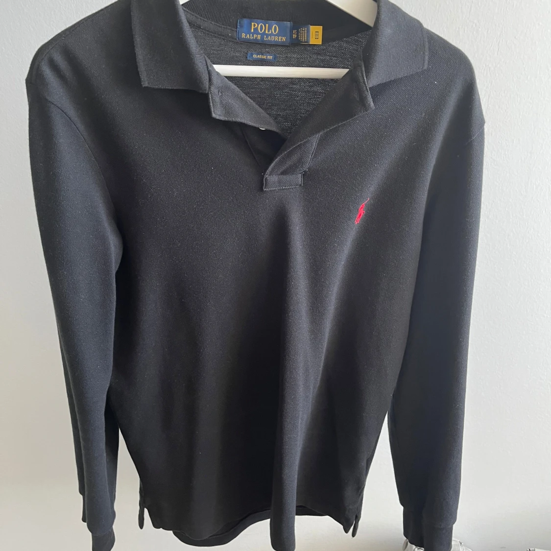 Klassisk svart långärmad pikétröja från Polo Ralph Lauren i bomull. Säljer den på grund av att den inte kommer till användning.