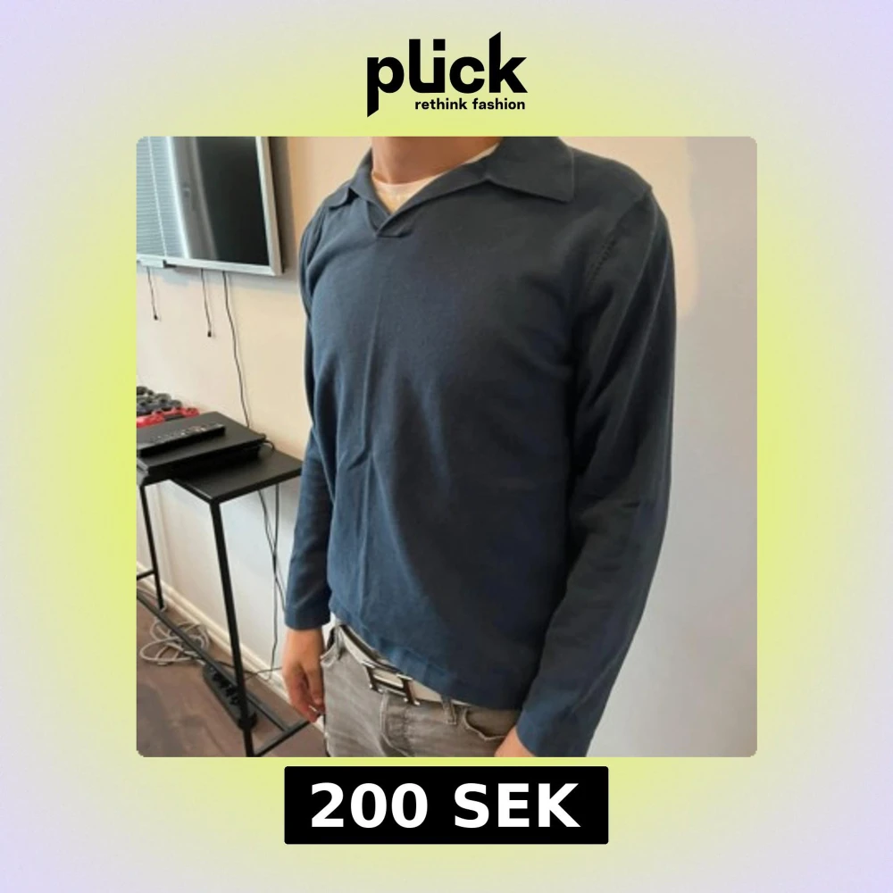 Säljer en stilren mörkblå pikétröja med klassisk krage och lång ärm. Tröjan är i mjukt bomullsmaterial och har en enkel, clean look utan synliga loggor eller detaljer. Perfekt för dig som gillar minimalistisk stil.