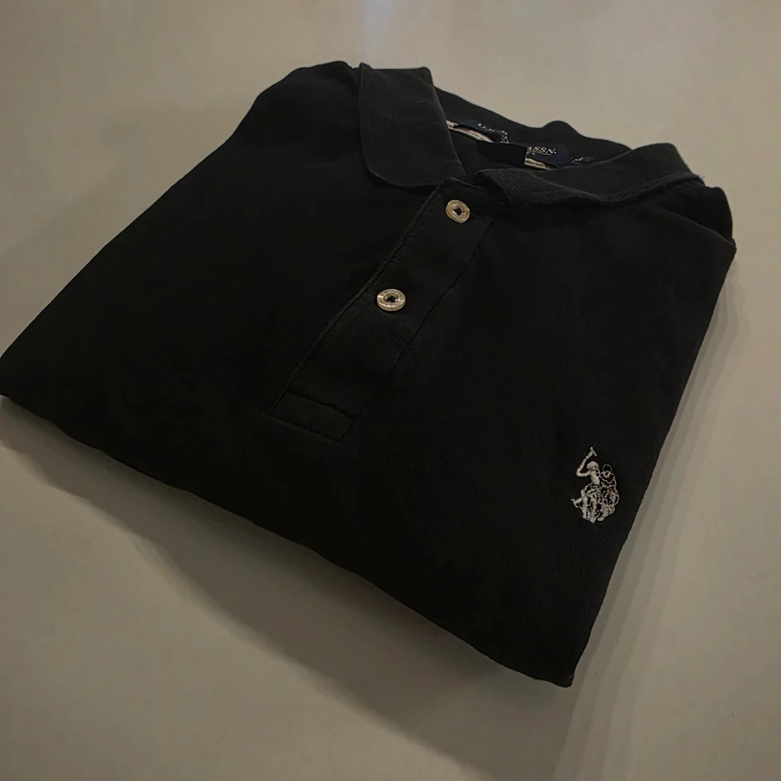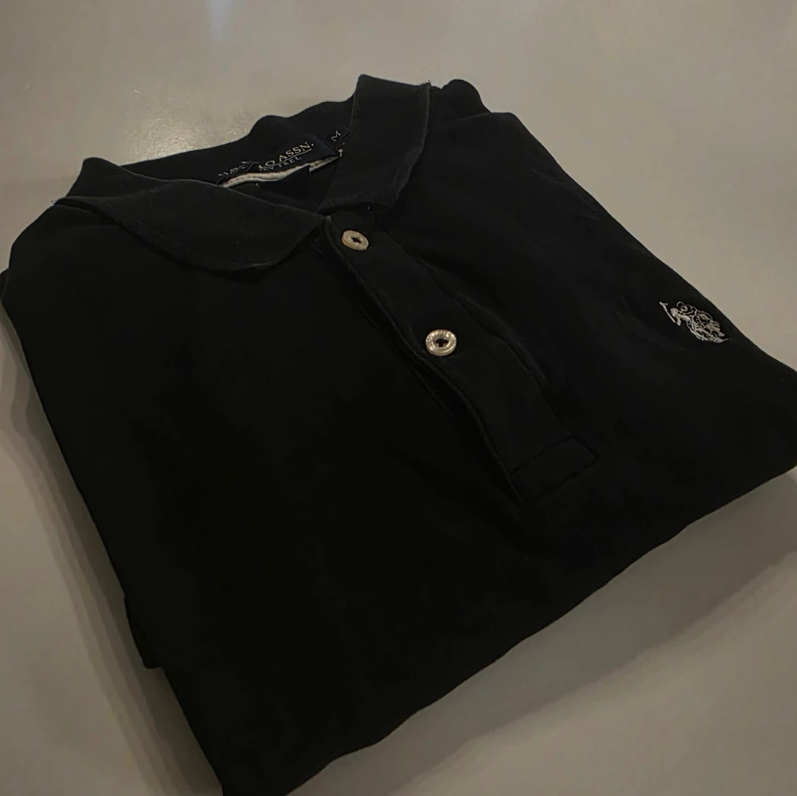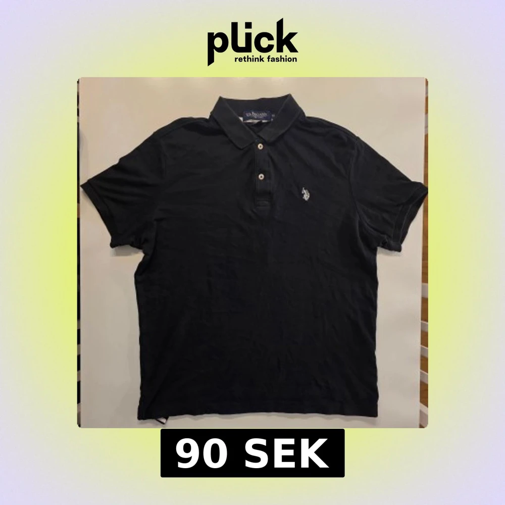 Klassisk svart pikétröja från U.S. Polo Assn. med broderad logga på bröstet. Tröjan har krage, korta ärmar och knäppning med tre knappar framtill. Perfekt för en clean och sportig stil. Väldigt snygg och sportig vid biceps STORLEK M