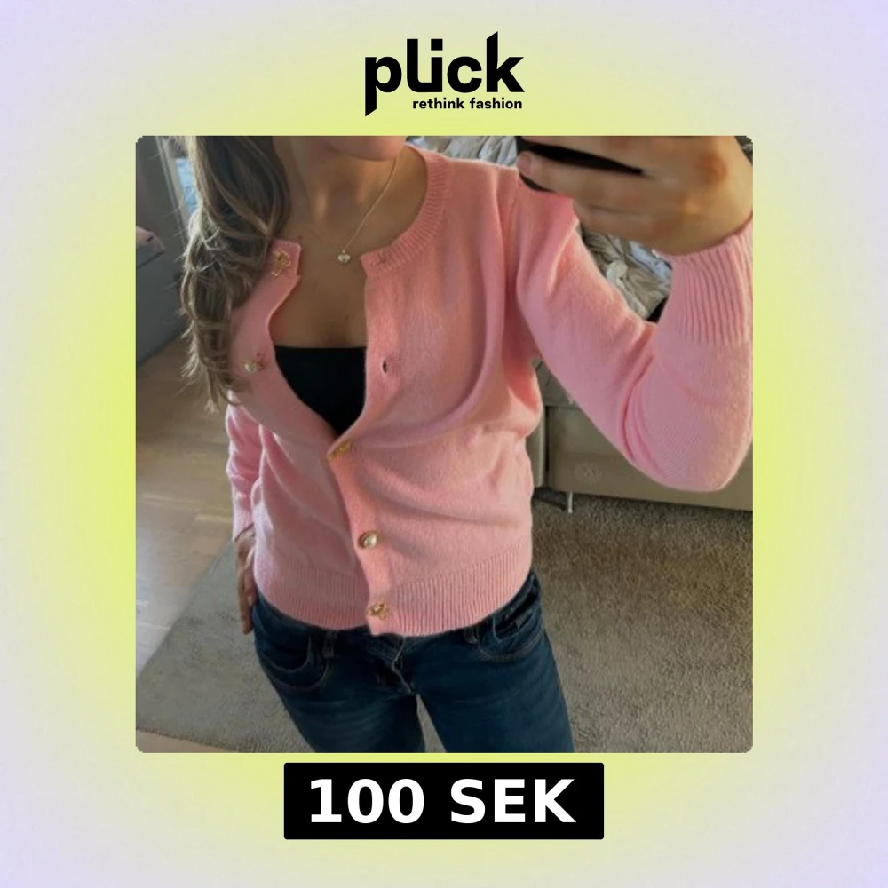 Säljer en söt rosa kofta med guldknappar. Koftan har långa ärmar och en ribbad kant vid ärmslut och nederkant💕