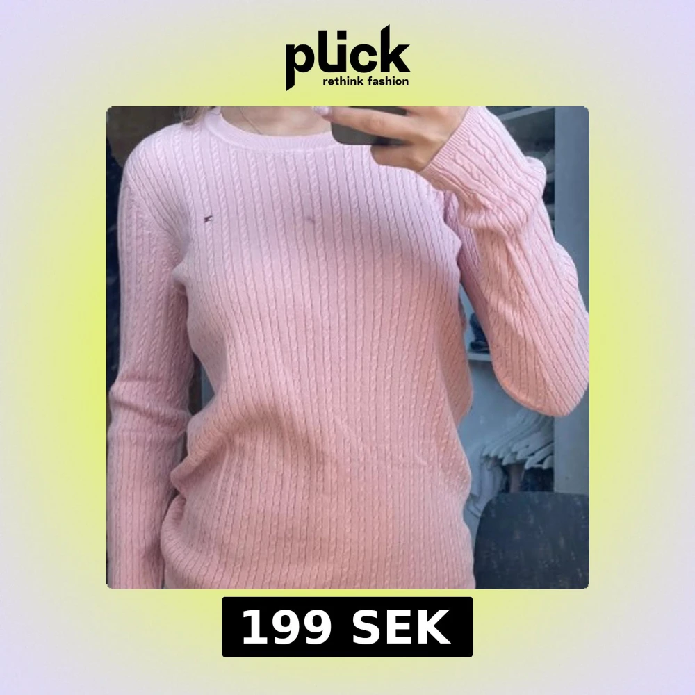 Säljer en snygg rosa stickad tröja från Tommy Hilfiger. Tröjan har ett klassiskt kabelstickat mönster och en liten logga på bröstet. Perfekt för en stilren look!