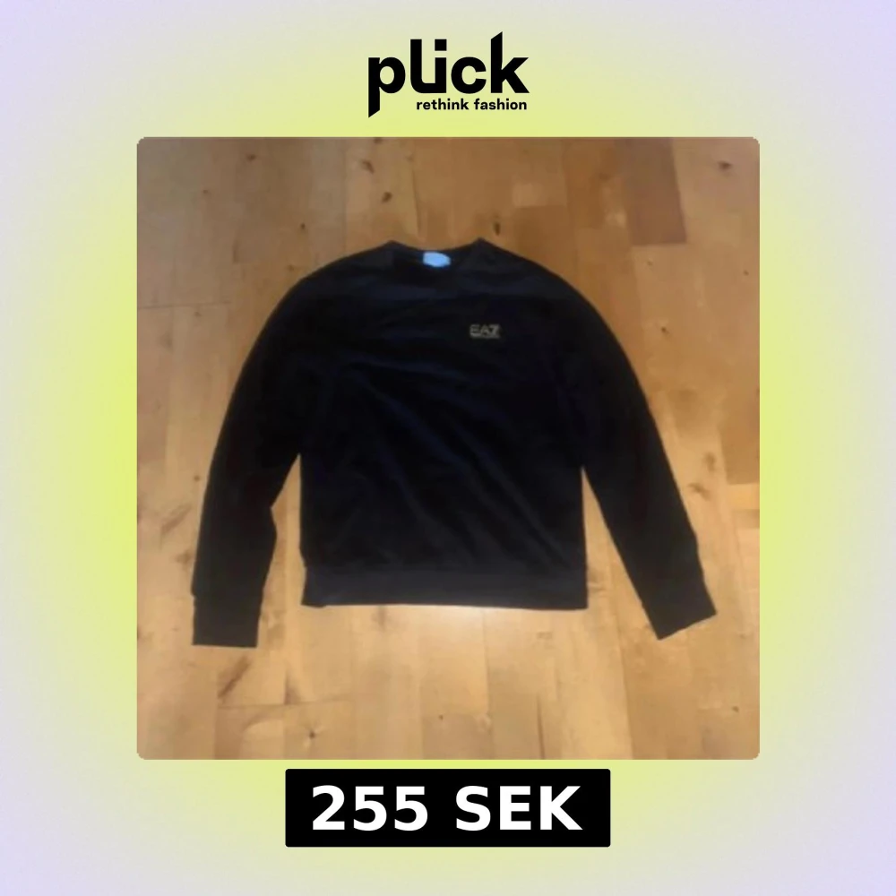 Säljer en svart sweatshirt från Emporio Armani EA7 med guldfärgad logga på bröstet. Tröjan har rund halsringning och långa ärmar. Använd fåtal gånger. Säljs eftersom jag har bytt stil. Pris kan diskuteras