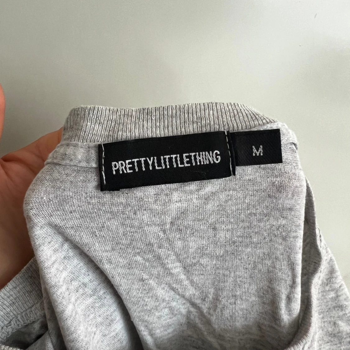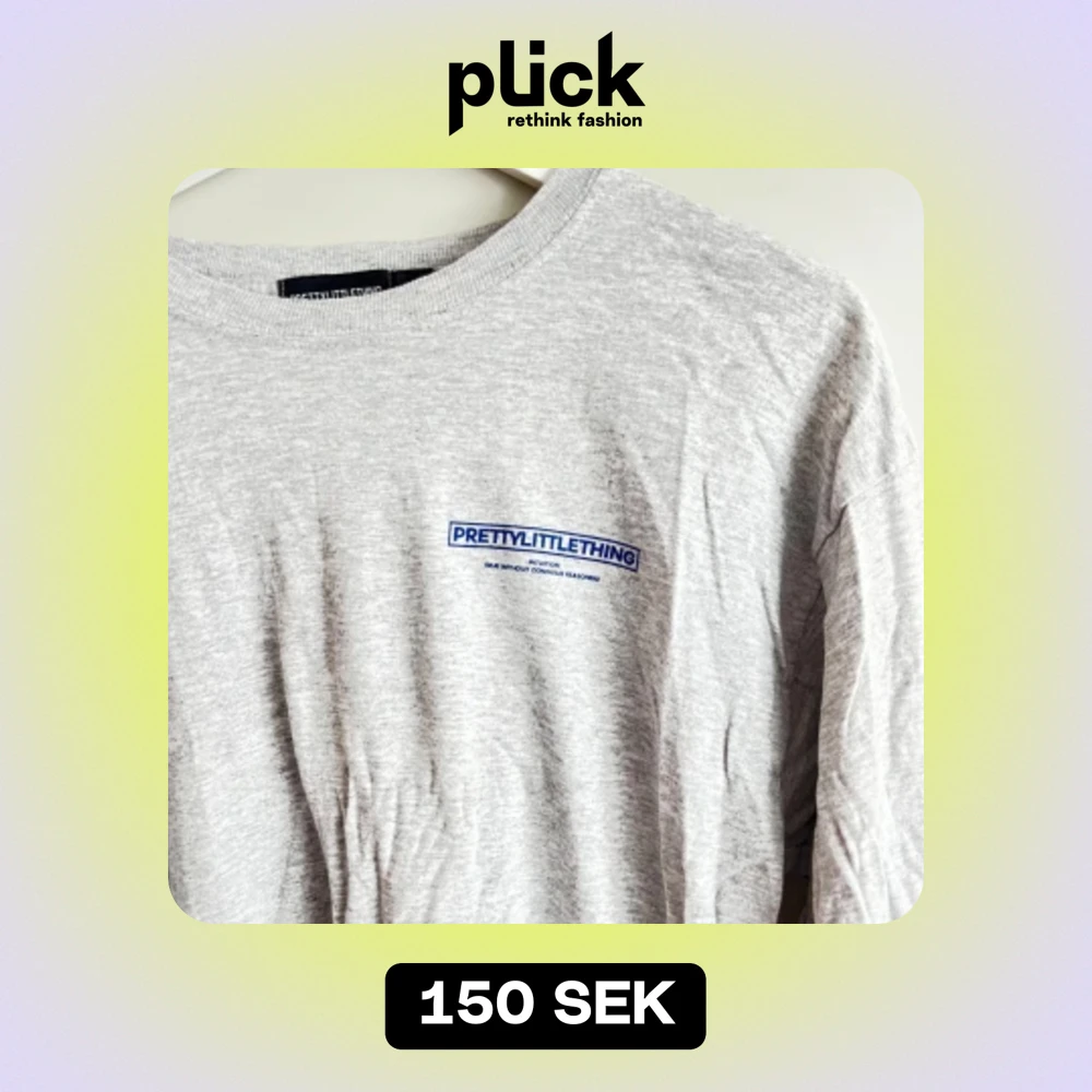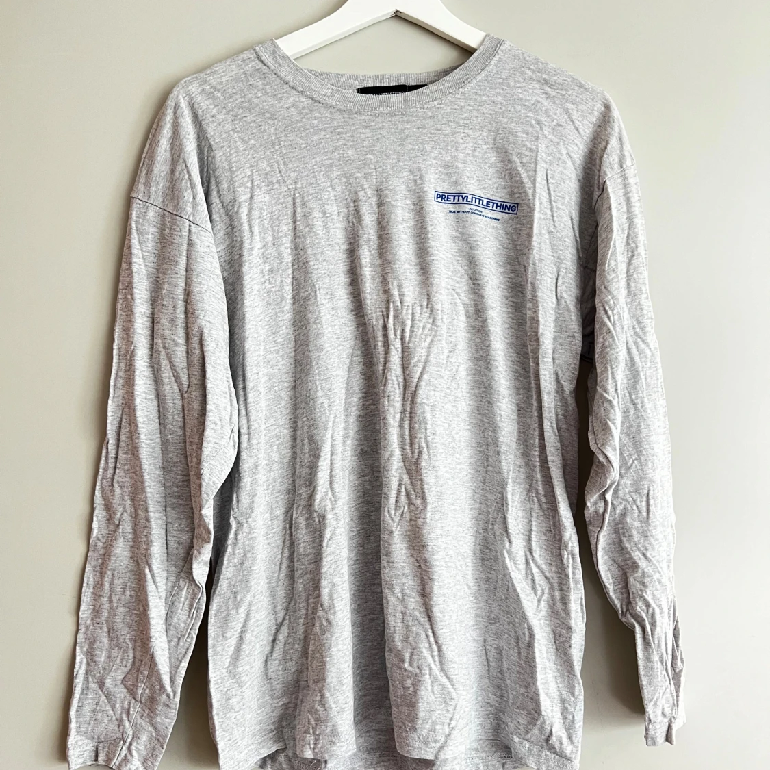 Säljer en grå långärmad tröja från PrettyLittleThing. Den är supermjuk och perfekt för en avslappnad look. Tröjan har en enkel design med en liten logga på bröstet. Perfekt för höst och vår!