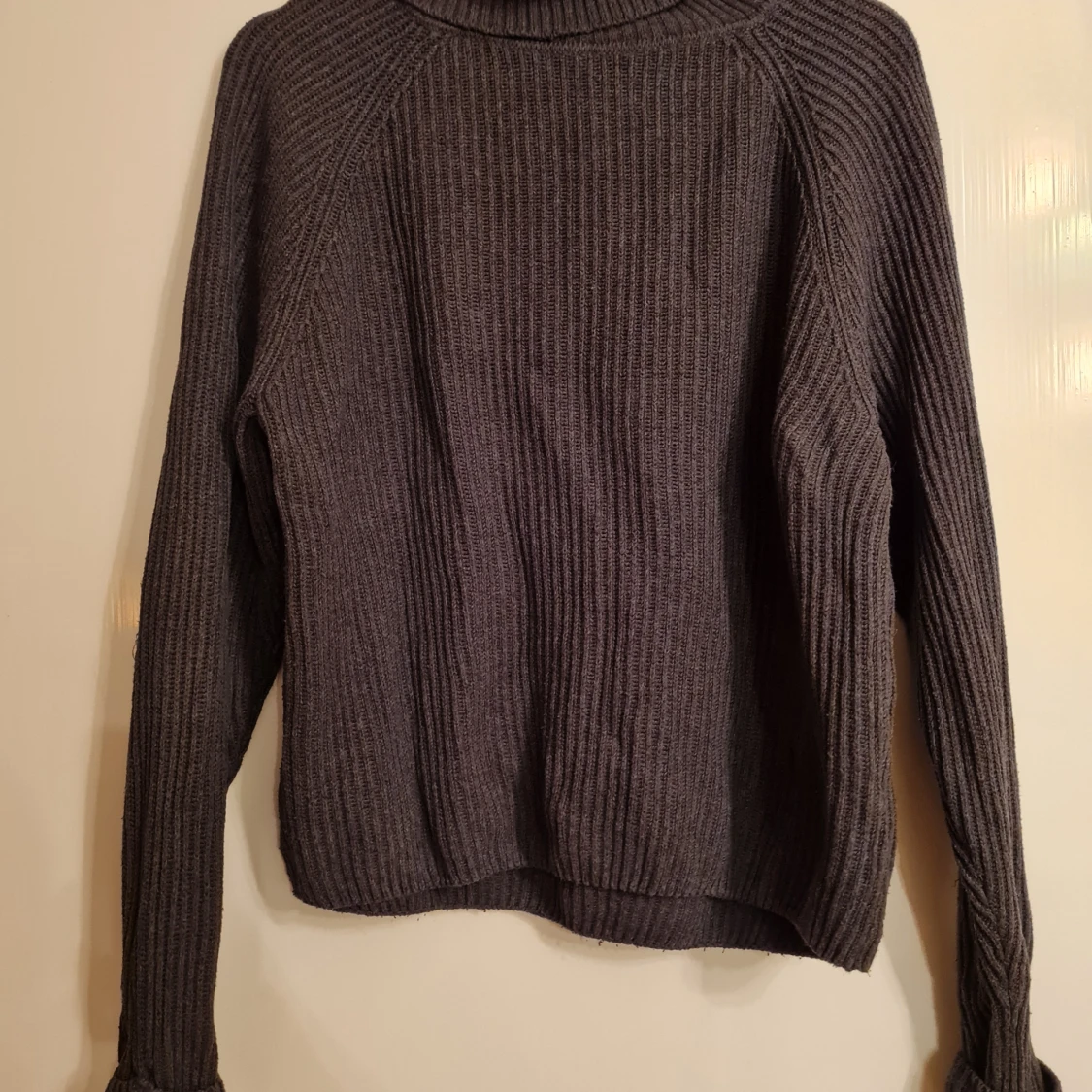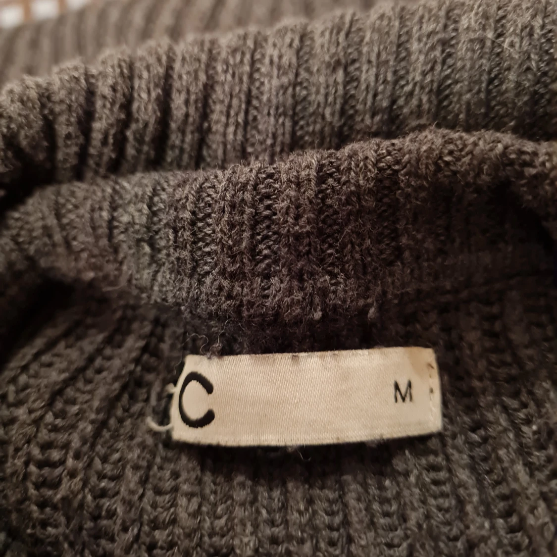 Stickad polotröja i bra skick, den är mörkgrå och är i storlek medium, det är knappt använd