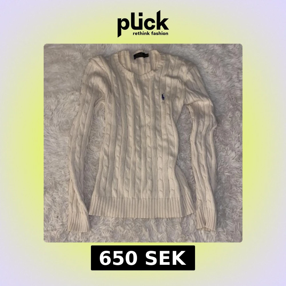 Säljer en krämvit kabelstickad tröja från Polo Ralph Lauren i storlek M.